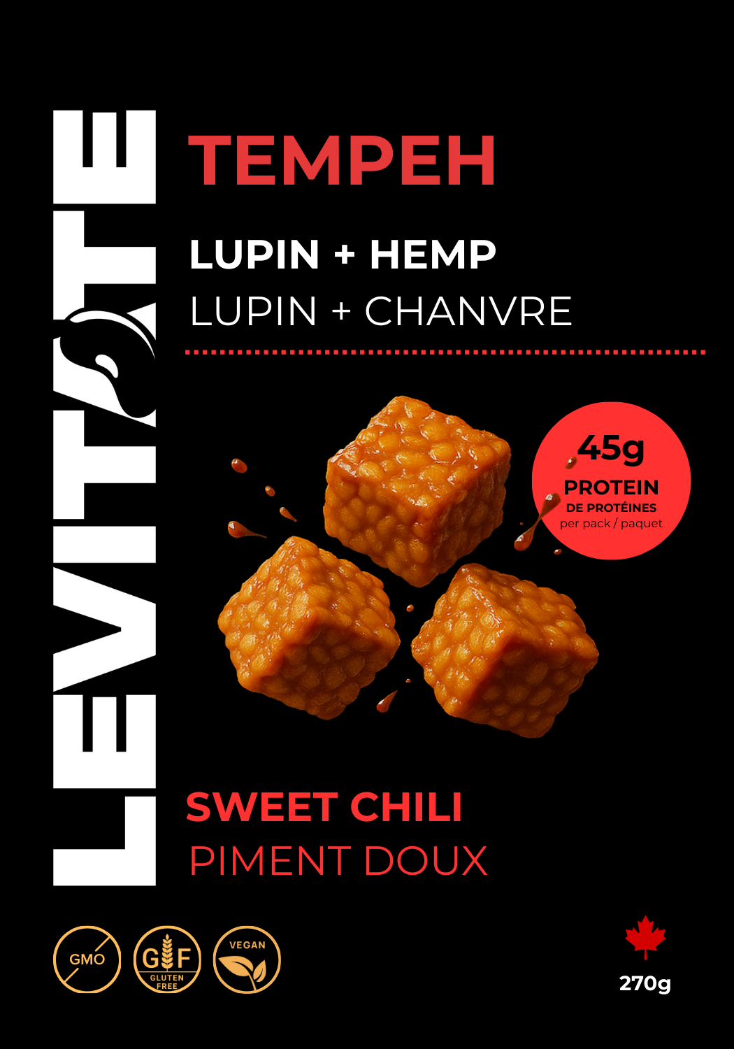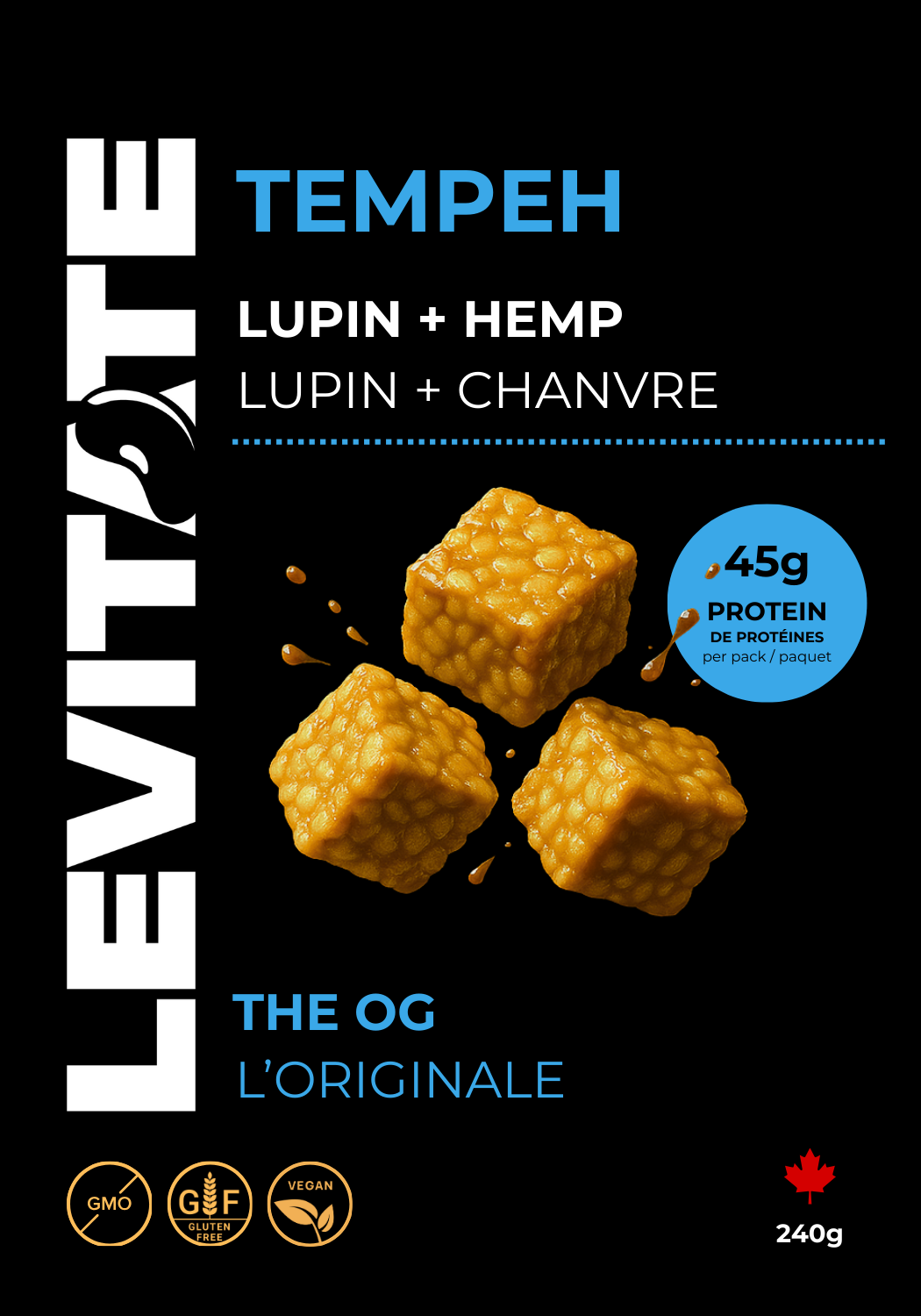Levitate tempeh is made with nutrient-rich lupin beans, marinated for flavor, and ready in minutes.